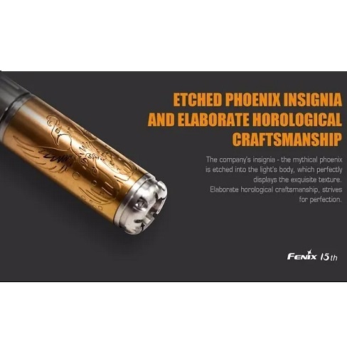 Linterna conmemorativa enchapada color rosa con la insignia de la compa??a (el f?nix m?tico), grabado al agua en el cuerpo de la linterna. Entrega una potencia m?xima de 85 l?menes y tres niveles de brillo mediante el uso de una bater?a AAA.